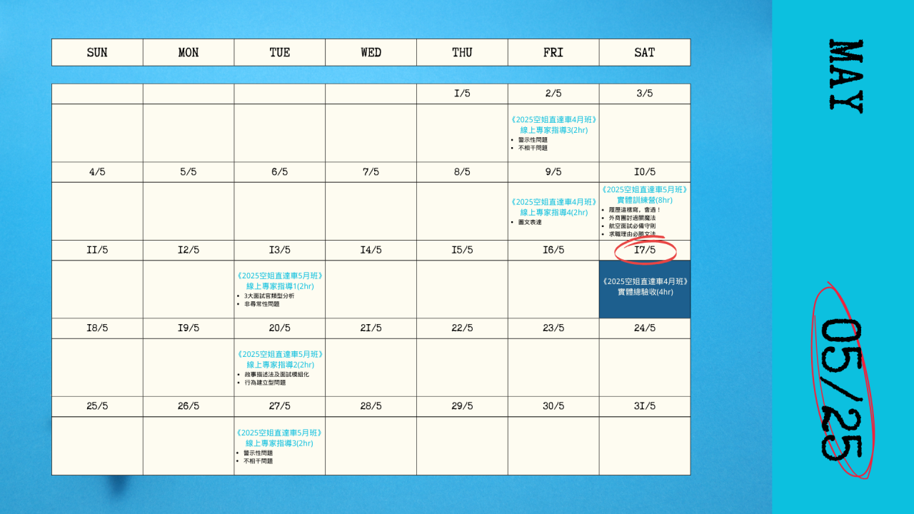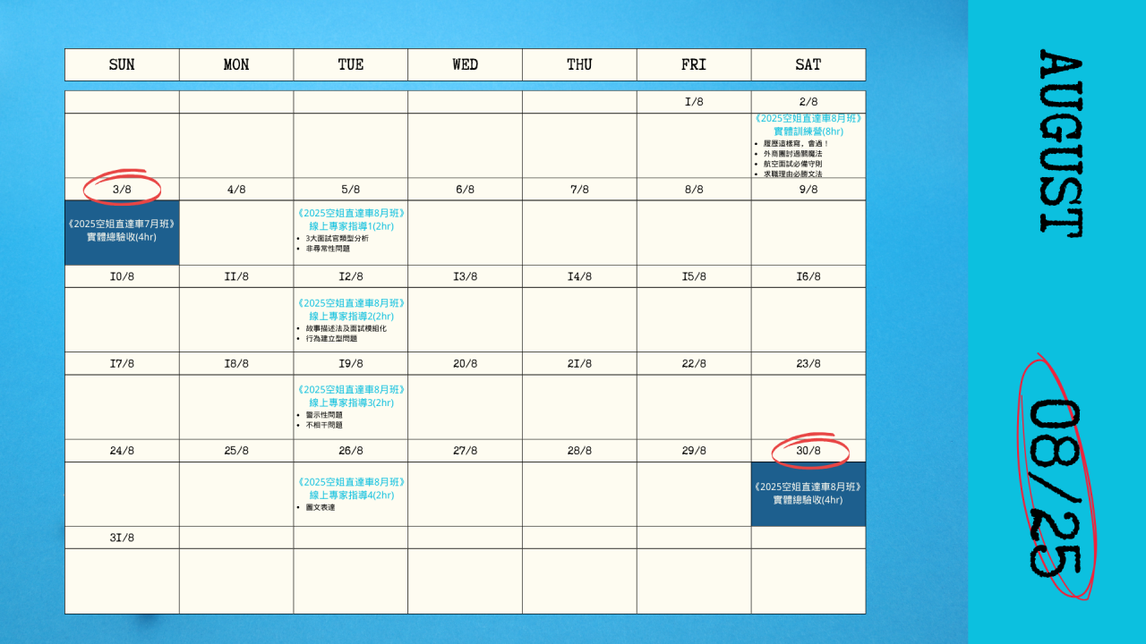空姐直達車開課時間