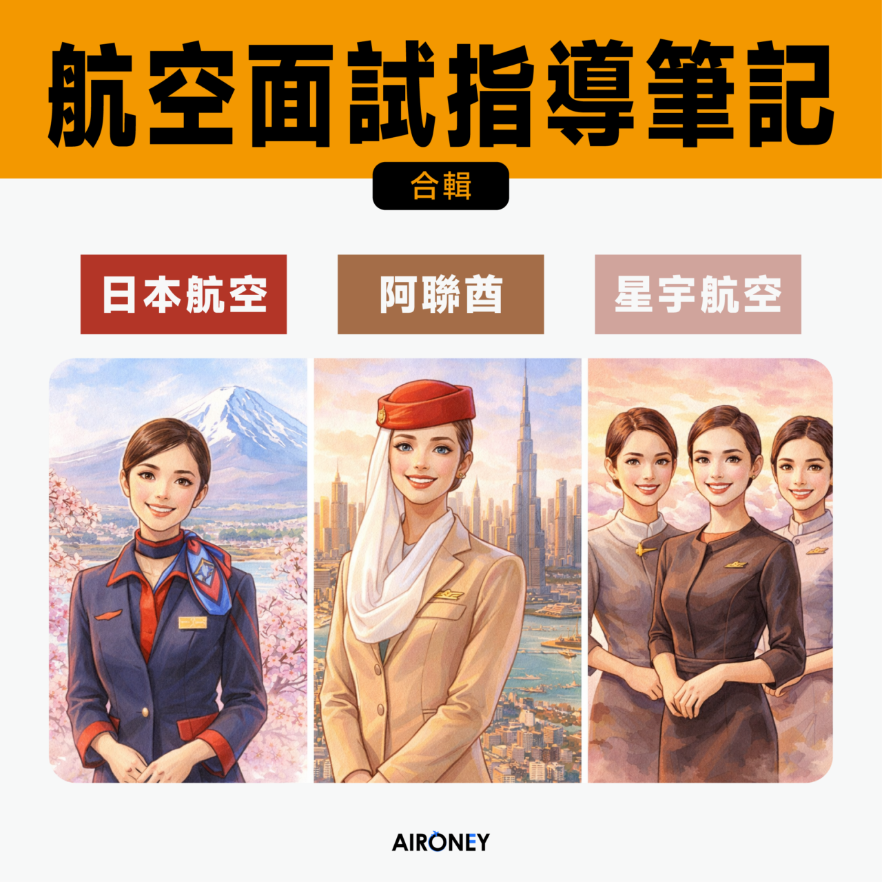 針對 2026/4 月招考的航空公司(阿聯酋航空/星宇航空/日本航空)